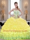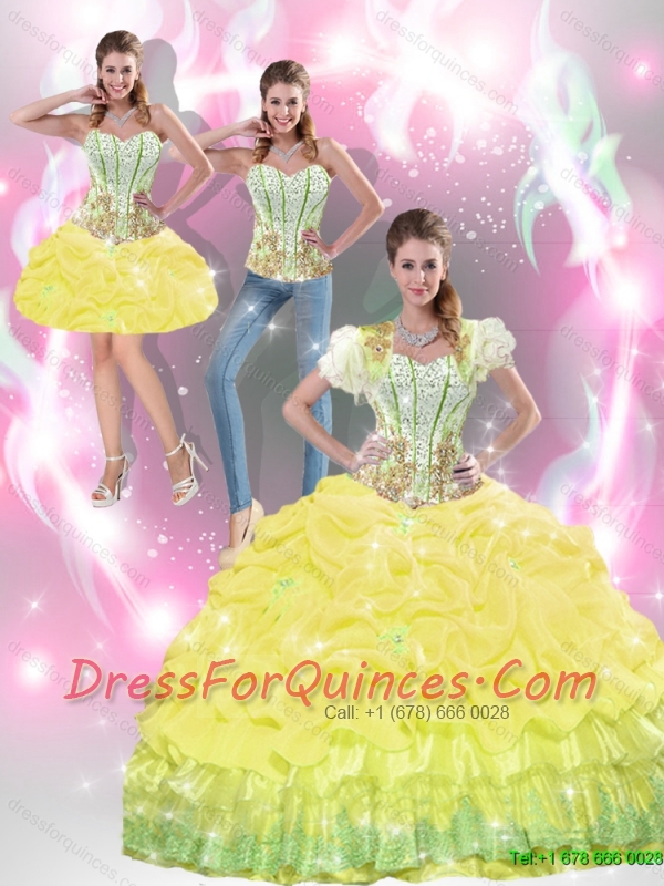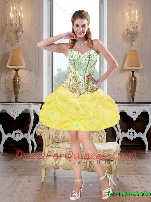2015 Beautiful Yellow 15th Birthday Dresses with Beading and Pick Ups