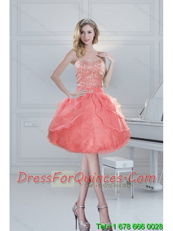 2015 New Style Beading Quinceanera Dresses in Watermelon