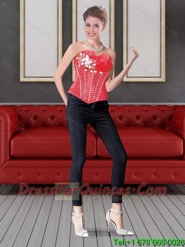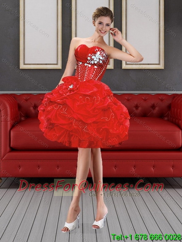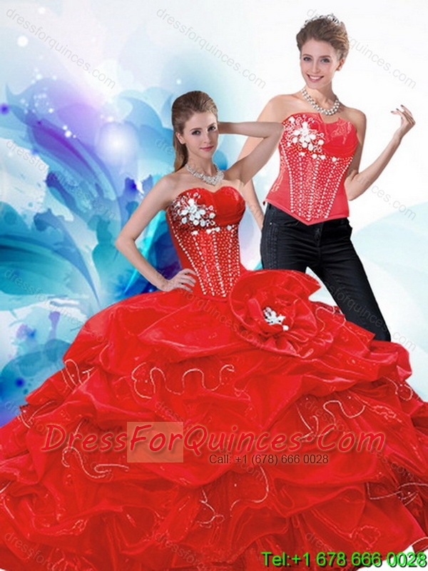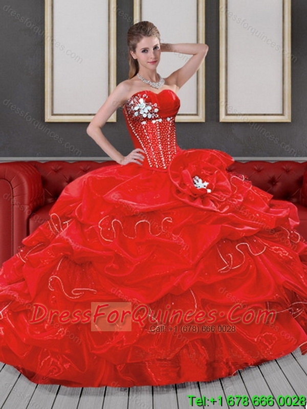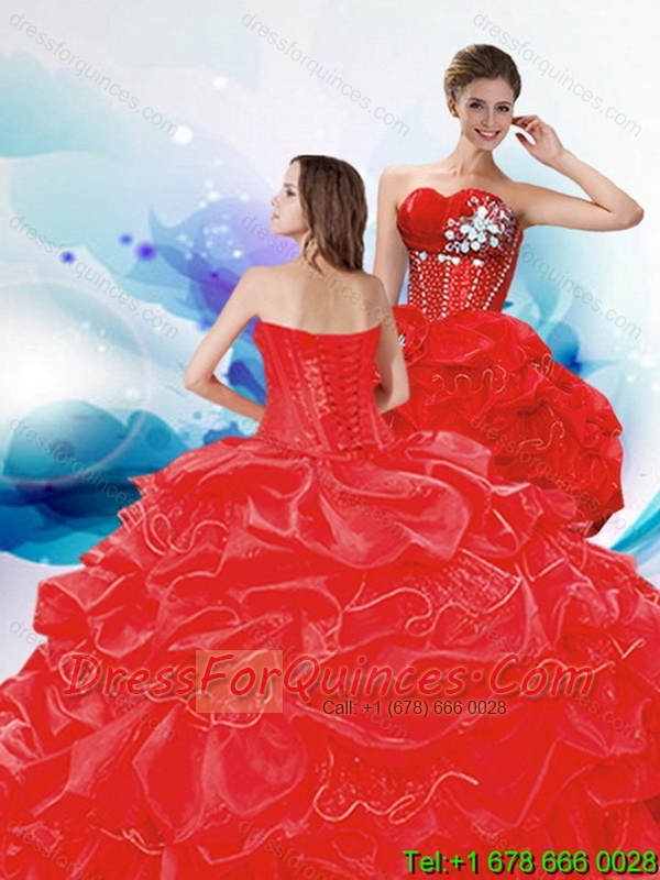 2015 Pretty Sweetheart Red Quince Dresses with Beading and Pick Ups
