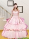 2015 Sweet Hot Pink Quinceanera Dresses with Beading and Ruffled Layers