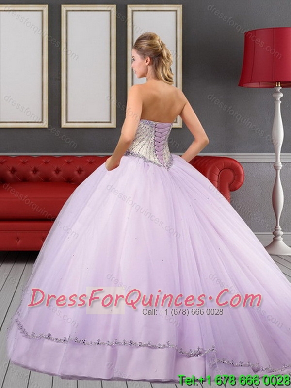 2015 Wonderful Sweetheart Quinceanera Dress in White and Lilac with Beading and Appliques