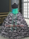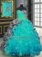Affordable Sweetheart Sleeveless Brush Train Lace Up Quince Ball Gowns Aqua Blue Organza and Printed