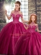Ball Gowns Sleeveless Fuchsia Sweet 16 Dresses Brush Train Lace Up