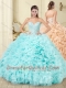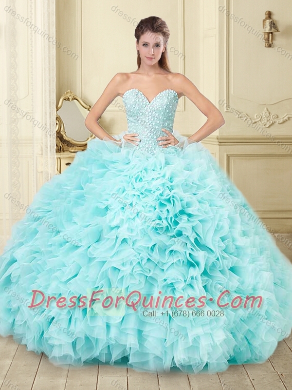 Beaded Beaded and Ruffled Aque Blue 15th Birthday Dresses in Tulle