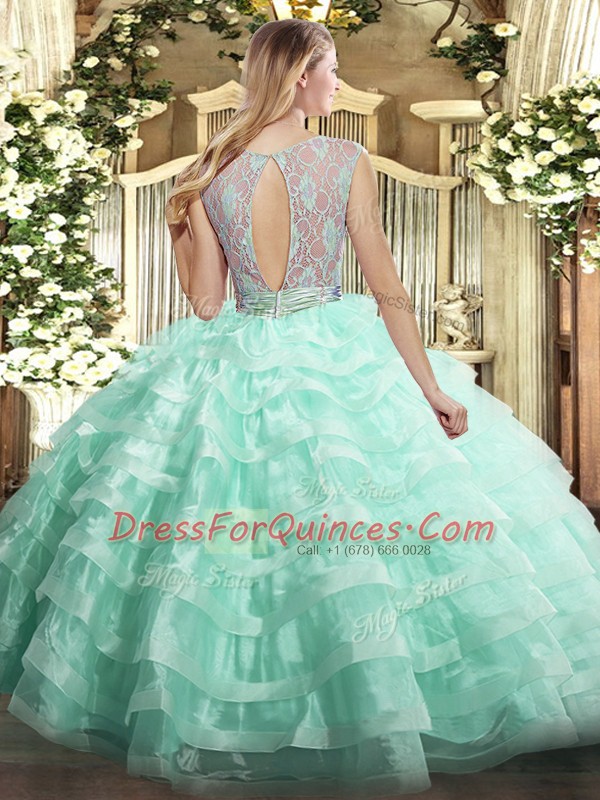 Beauteous Ball Gowns Sweet 16 Dresses Champagne Scoop Organza Sleeveless Floor Length Backless