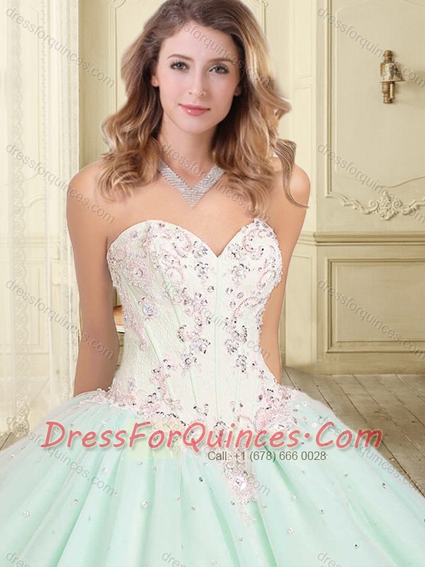 Beautiful Beaded and Applique Sweetheart 15th Birthday Dresses in Apple Green