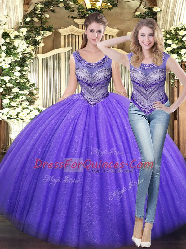 Beautiful Floor Length Ball Gowns Sleeveless Lavender Quinceanera Gown Lace Up