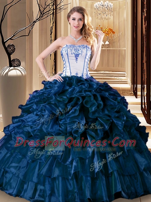 Captivating Strapless Sleeveless Organza 15th Birthday Dress Pick Ups Lace Up