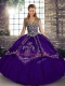 Chic Purple Quinceanera Gowns Military Ball and Sweet 16 and Quinceanera with Beading and Embroidery Straps Sleeveless Lace Up