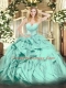 Chic Sleeveless Floor Length Beading and Ruffles Lace Up Quinceanera Dresses with Turquoise