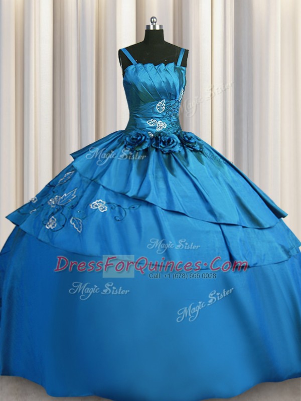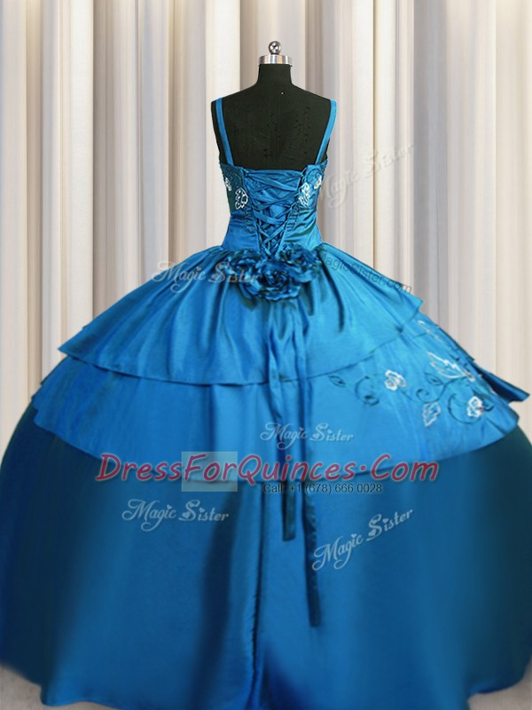 Chic Teal Ball Gowns Beading and Embroidery Quinceanera Gown Lace Up Satin Sleeveless Floor Length