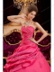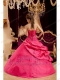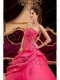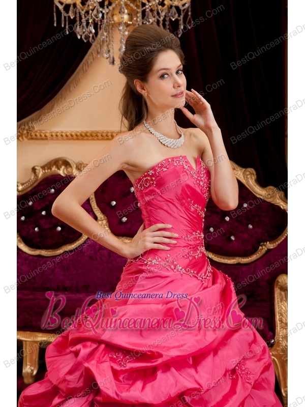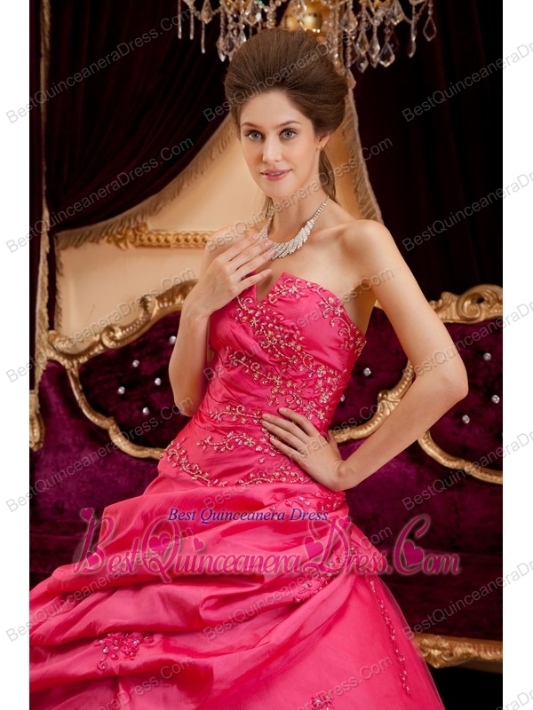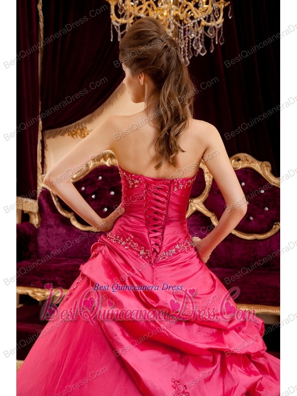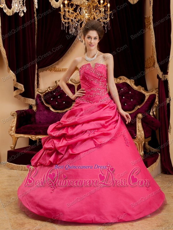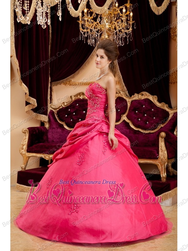 Coral Red Ball Gown Strapless Floor-length Taffeta Appliques Coral Red Quinceanera Dress
