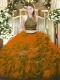 Cute Tulle Halter Top Sleeveless Lace Up Beading and Ruffles Quinceanera Gown in Brown