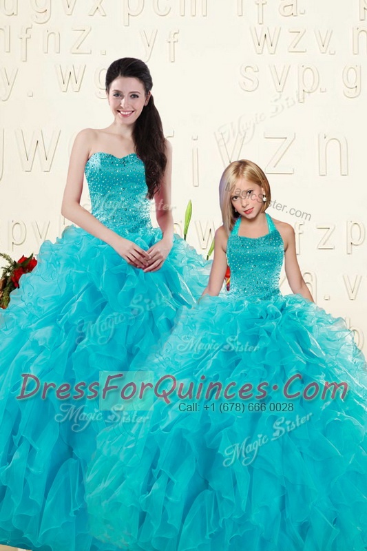 Edgy Aqua Blue Sweetheart Lace Up Beading and Ruffles Vestidos de Quinceanera Sleeveless