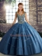 Excellent Floor Length Lace Up Vestidos de Quinceanera Blue for Military Ball and Sweet 16 and Quinceanera with Beading and Appliques