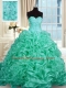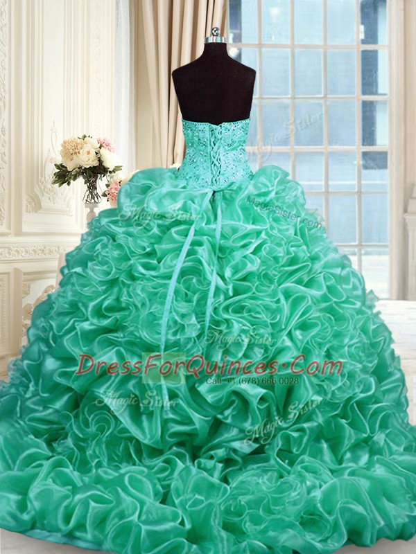 Exquisite Pick Ups With Train Ball Gowns Sleeveless Turquoise Quinceanera Gowns Lace Up