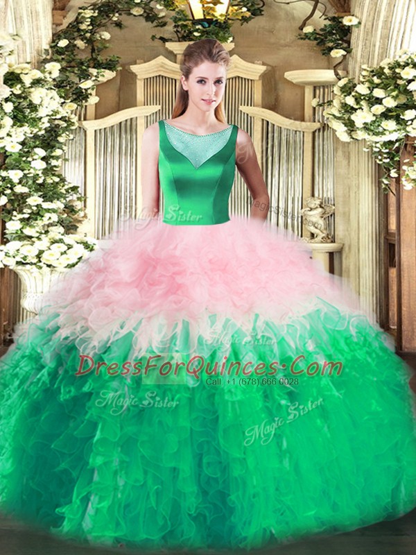 Fantastic Scoop Sleeveless Side Zipper Quince Ball Gowns Multi-color Tulle