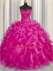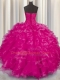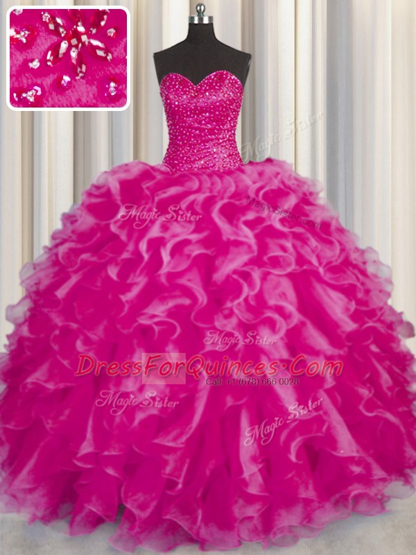 Fashionable Hot Pink Organza Lace Up Sweetheart Sleeveless Floor Length Quinceanera Dress Beading and Ruffles