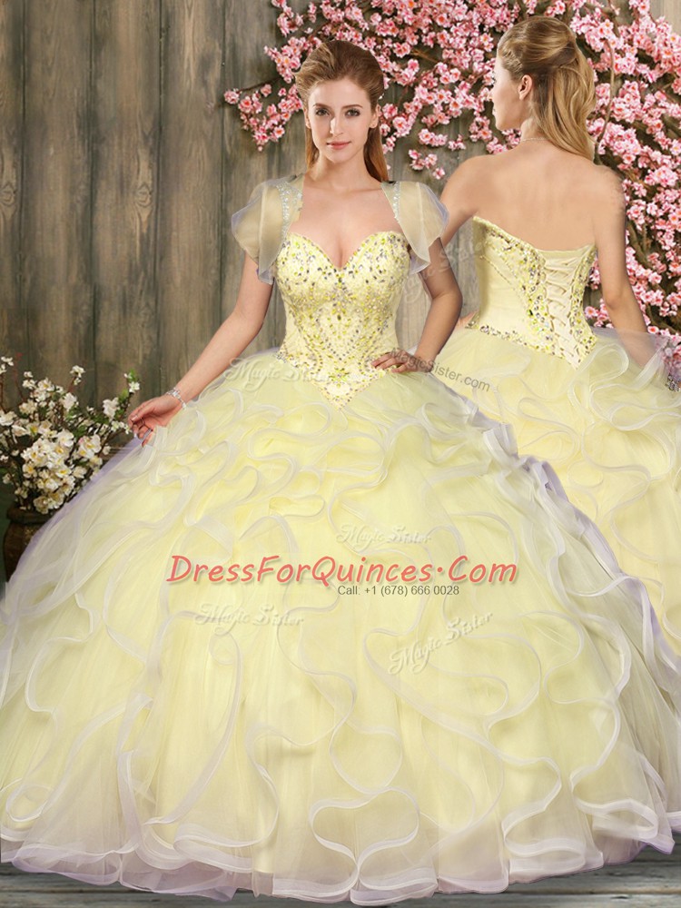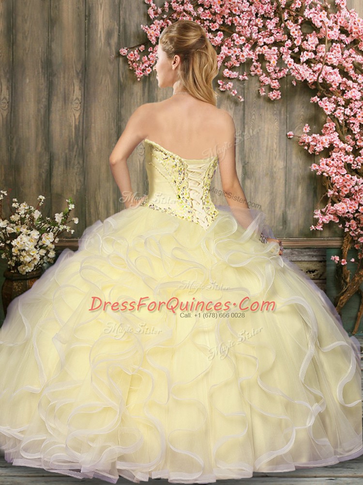 Floor Length Light Yellow Quince Ball Gowns Sweetheart Sleeveless Lace Up