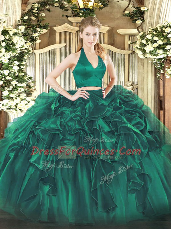 Floor Length Two Pieces Sleeveless Dark Green Quinceanera Dresses Zipper