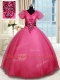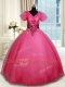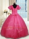 Glamorous Coral Red Ball Gowns Beading Quince Ball Gowns Lace Up Organza Short Sleeves Floor Length