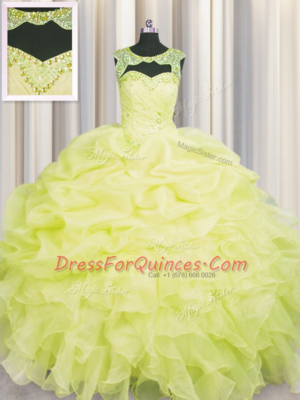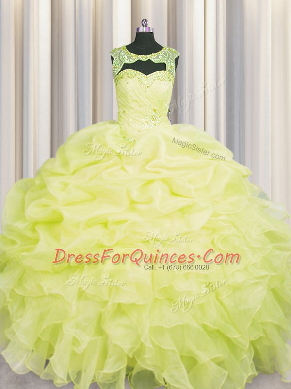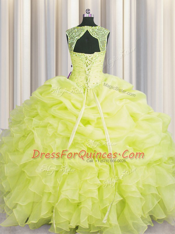 Glamorous Scoop Organza Sleeveless Floor Length Vestidos de Quinceanera and Beading and Pick Ups