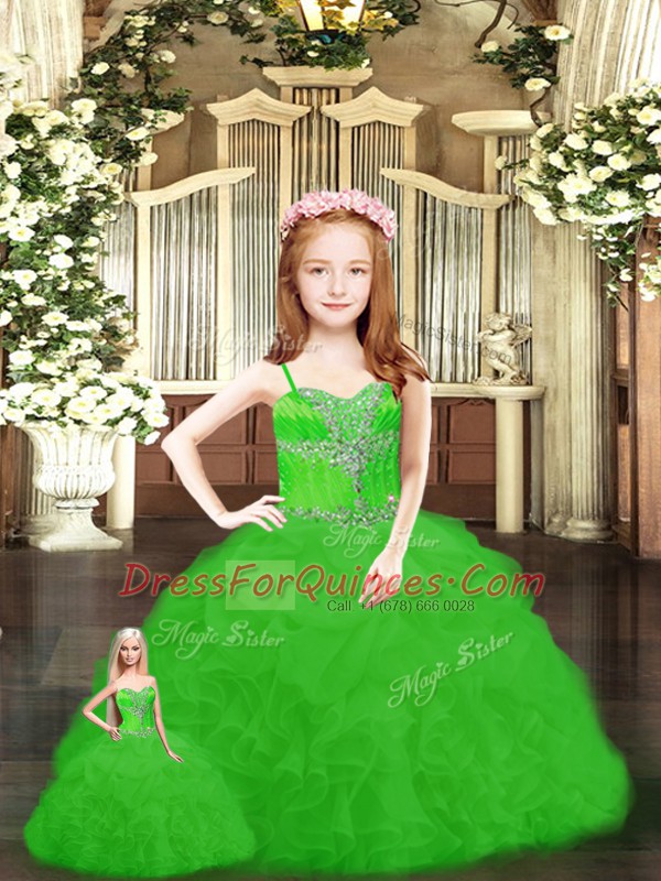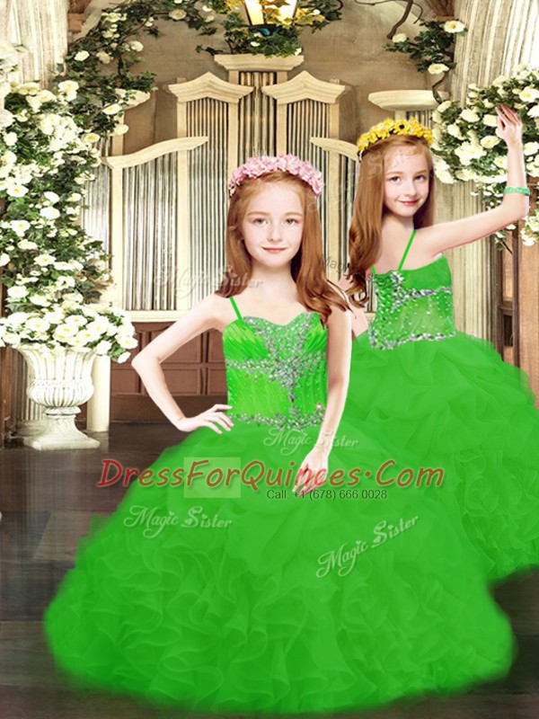 Glorious Green Tulle Lace Up Sweet 16 Quinceanera Dress Sleeveless Floor Length Beading and Ruffles