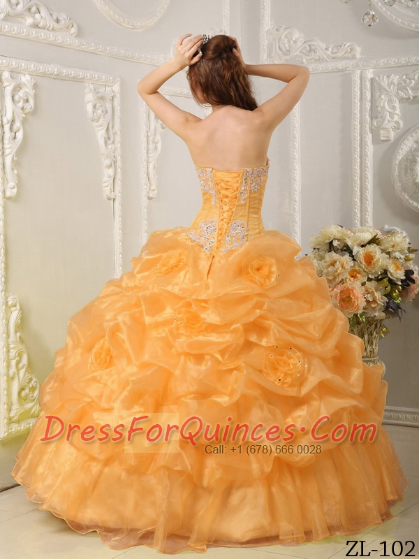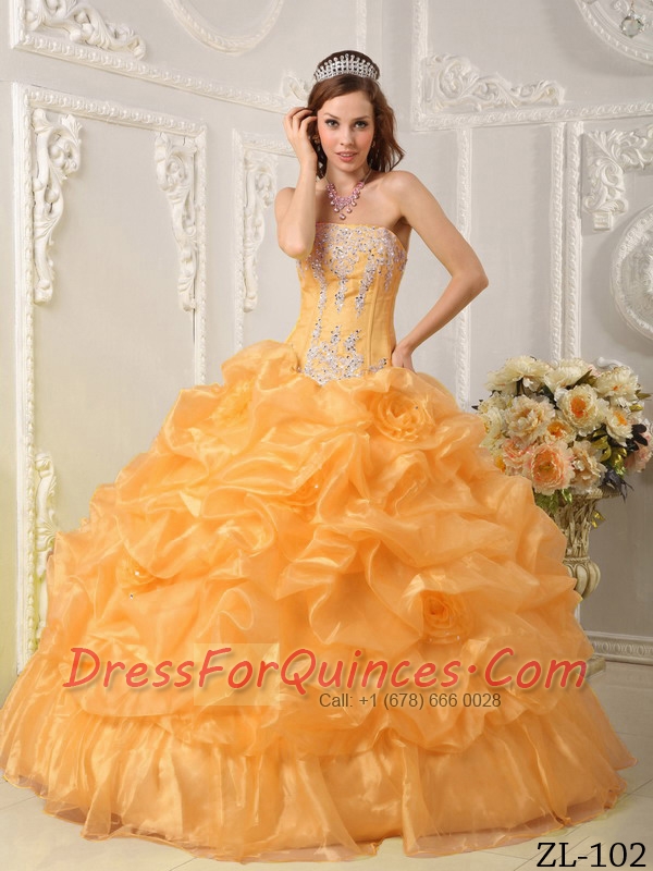 Gold Ball Gown Strapless 15th Birthday Dresses Organza Beading