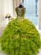 Graceful Sleeveless Floor Length Beading Lace Up Quinceanera Dresses with Olive Green