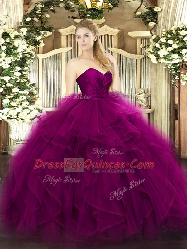 Great Fuchsia Sweetheart Zipper Ruffles Quinceanera Dresses Sleeveless