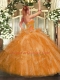 High End Orange Organza Lace Up Sweetheart Sleeveless 15 Quinceanera Dress Beading and Ruffles