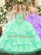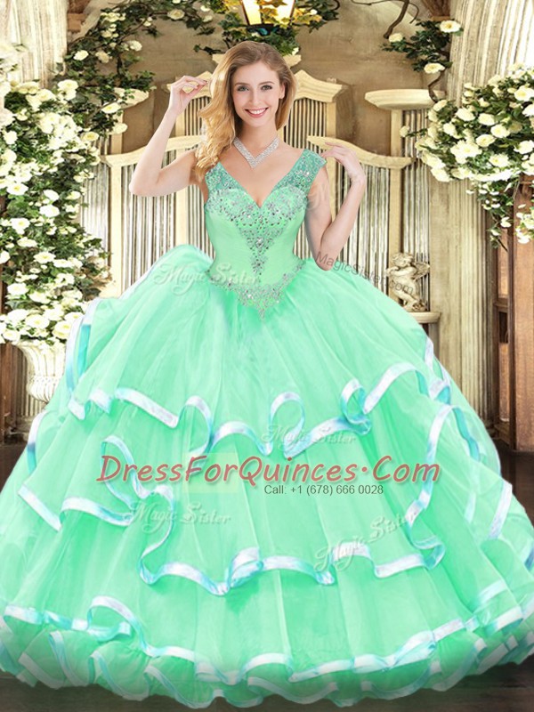 High End V-neck Sleeveless Lace Up Quinceanera Gowns Apple Green Organza