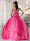 Hot Pink Ball Gown Strapless Quinceanera Dress with Taffeta Lace