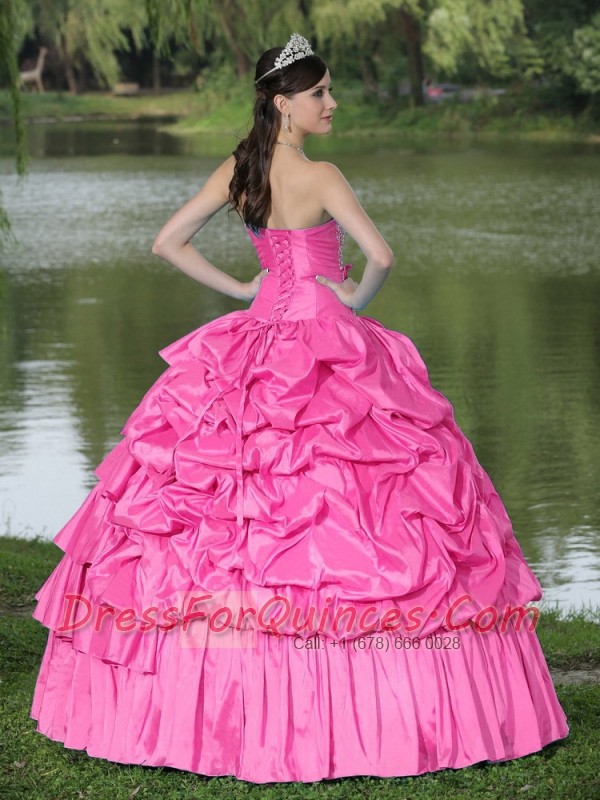 Hot Pink For Clearance 15th Birthday Dresses With Strapless Beaded Decorate Taffeta