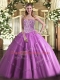 Inexpensive Floor Length Lilac Quinceanera Gowns Tulle Sleeveless Beading