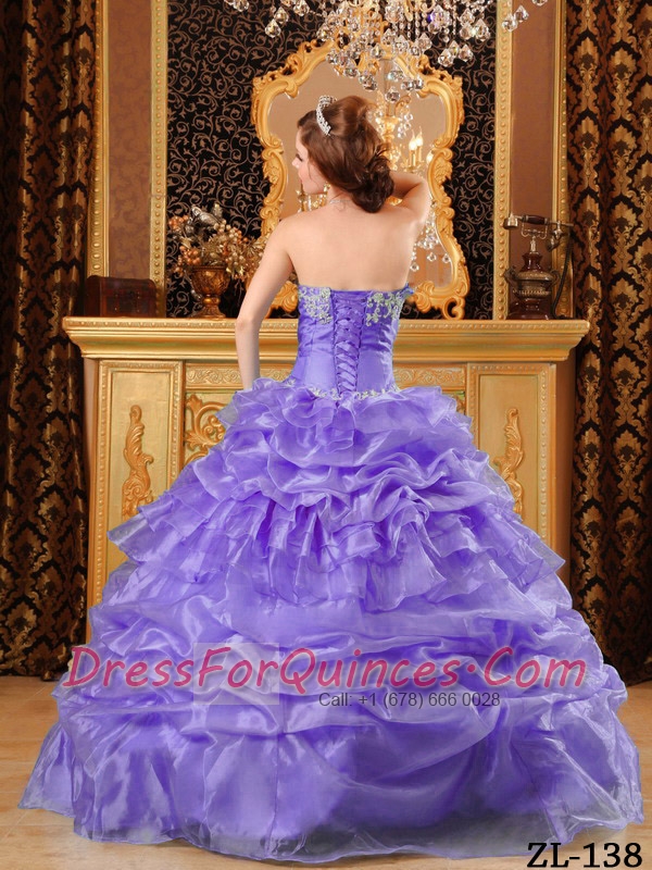 Lavender Ball Gown Sweetheart 15th Birthday Dresses with Organza Appliques