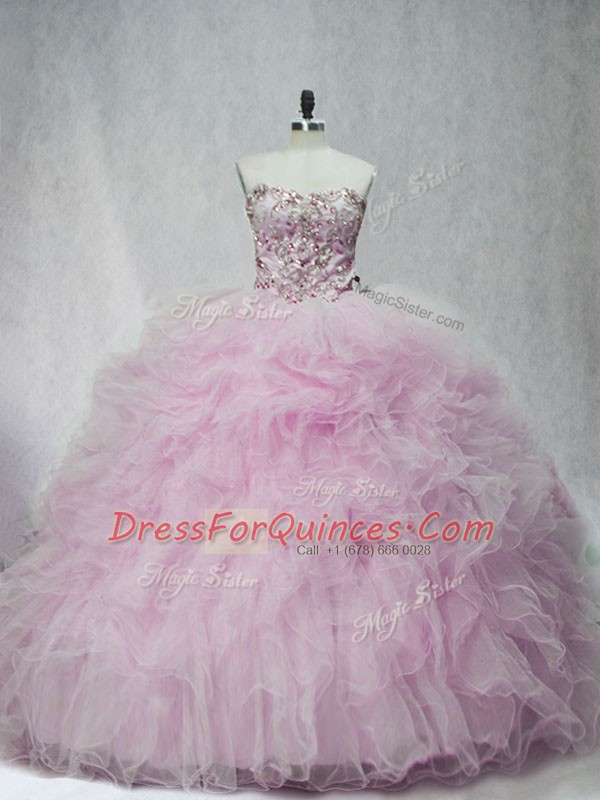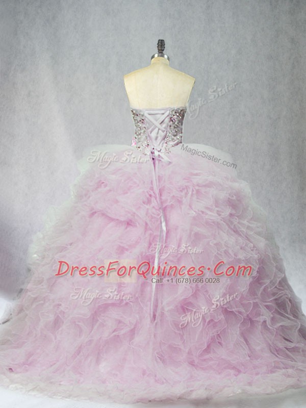 Lilac 15 Quinceanera Dress Sweet 16 and Quinceanera with Beading and Ruffles Sweetheart Sleeveless Brush Train Lace Up