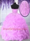 Lilac Lace Up Sweetheart Beading and Ruffles Quince Ball Gowns Organza Sleeveless