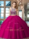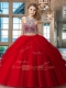 Low Price Red Tulle Criss Cross Scoop Sleeveless Floor Length Quince Ball Gowns Beading and Pick Ups