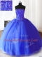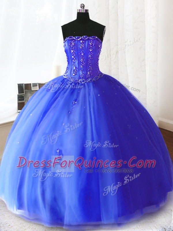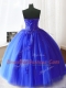 Low Price Strapless Sleeveless Lace Up Quinceanera Dress Royal Blue Tulle