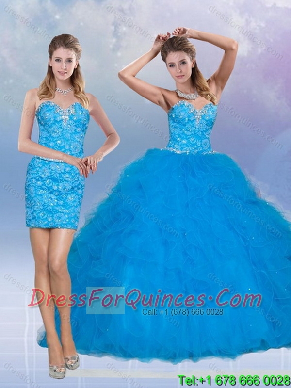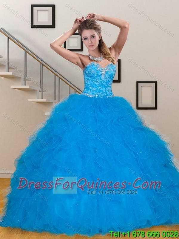 Luxurious Teal Sweetheart 2015 Quinceanera Dresses with Sequins and Ruffles