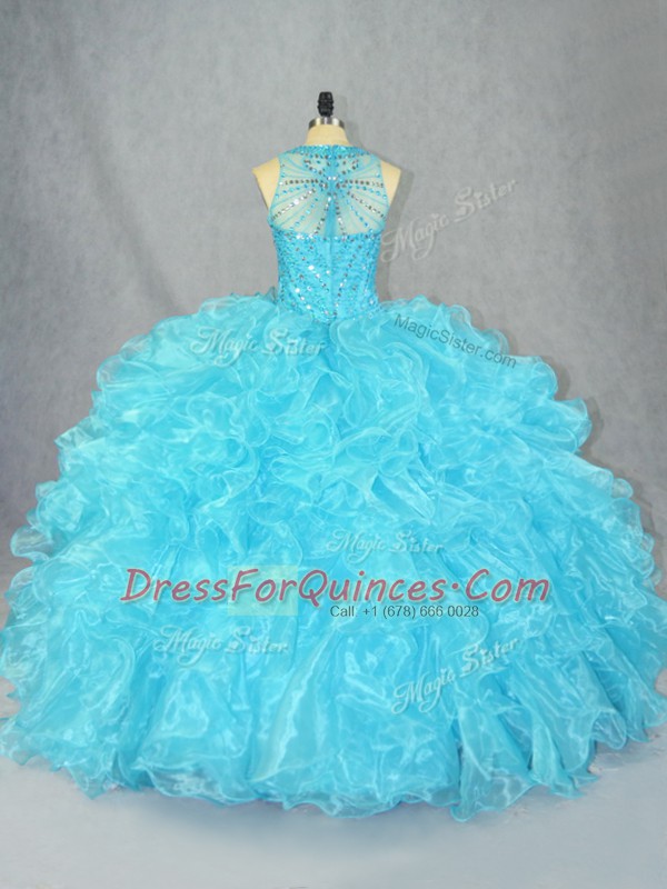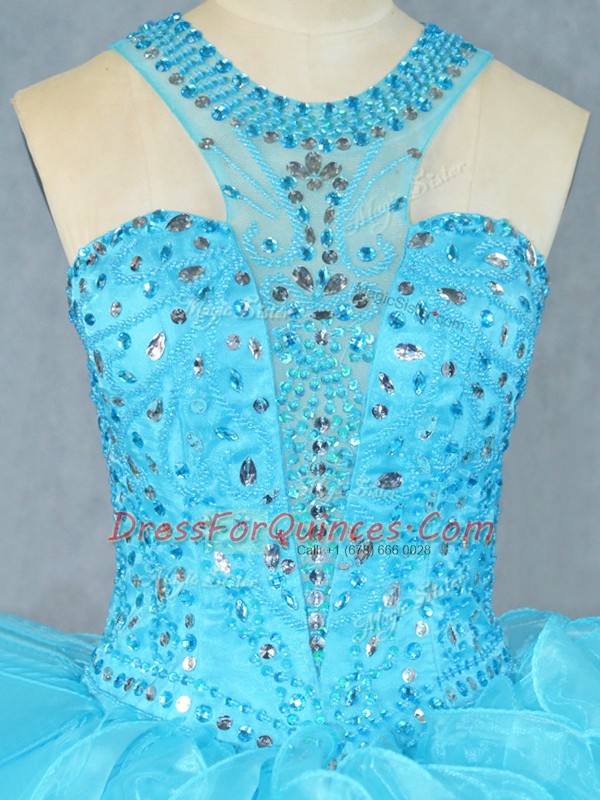 Modern Baby Blue Scoop Neckline Beading and Ruffles 15th Birthday Dress Sleeveless Zipper