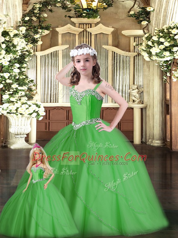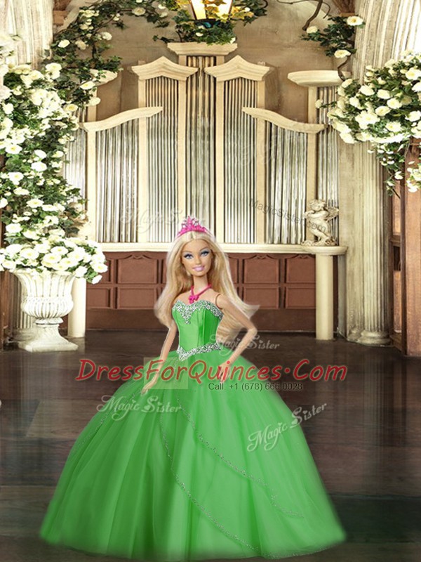 Modern Sweetheart Sleeveless Tulle Quince Ball Gowns Beading Lace Up