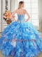 Most Popular Baby Blue Sweetheart Lace Up Beading and Ruffles and Sequins Sweet 16 Dresses Sleeveless
