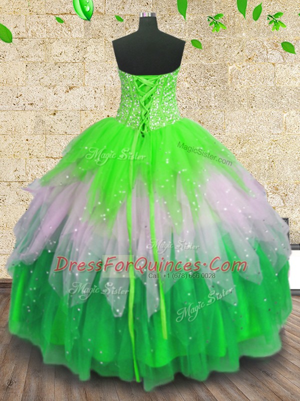 Multi-color Sleeveless Beading and Ruffles and Sequins Floor Length Sweet 16 Quinceanera Dress
