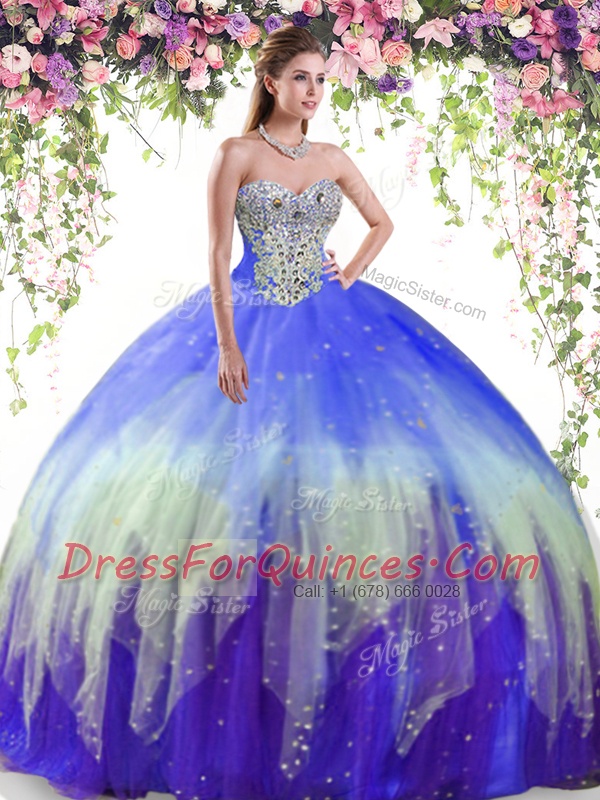 Multi-color Sleeveless Tulle Lace Up Sweet 16 Quinceanera Dress for Military Ball and Sweet 16 and Quinceanera