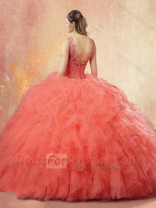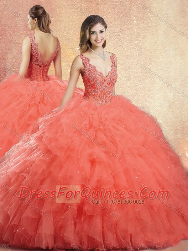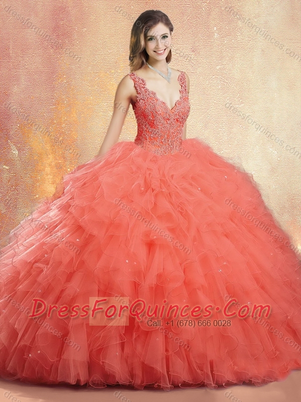 New Arrivals V Neck Sweet 16 Dresses with Ruffles and Appliques