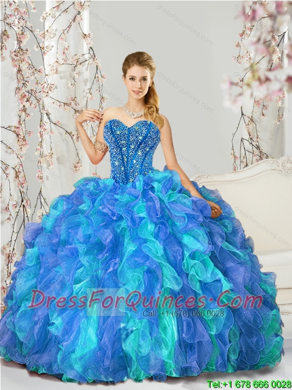 New Style Beading and Ruffles Multi Color Quinceanera Dresses for 2015