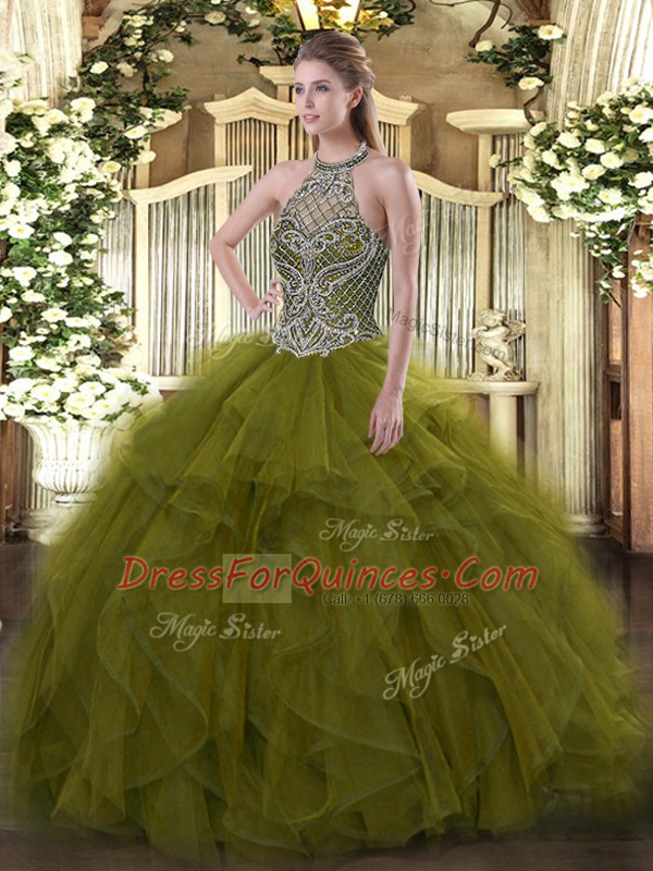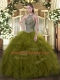 Olive Green Sleeveless Organza Lace Up Sweet 16 Quinceanera Dress for Sweet 16 and Quinceanera