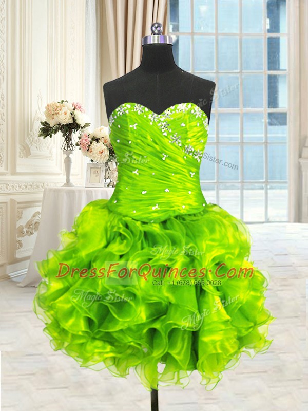 Perfect Four Piece Organza Sleeveless Floor Length Quinceanera Dresses and Beading and Ruffles and Ruching